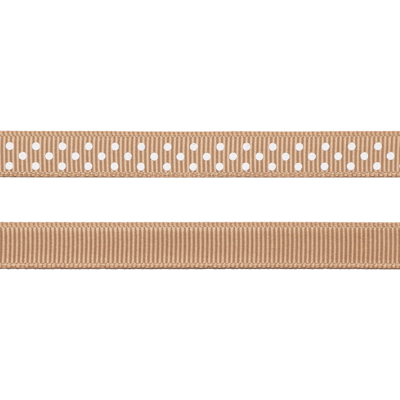 Grosgrainband - Prickar - 10 mm - Beige/Vit