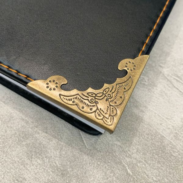 Dekorationshörn tillverkade i metall. Passar som dekoration och för att skydda hörn på böcker och album med mera vid bokbindning.
