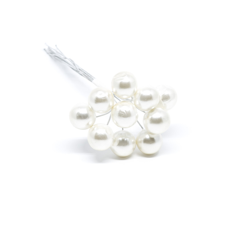 Dekorationsbär med fint pärlemorskimrande yta, fäst på en ståltrådsstjälk i liknande färg. Ståltråden är mjuk och lätt att forma till önskad form. Perfekt att använda för att ge det där lilla extra till dina olika dekorationsprojekt! De cirka 13 millimeter breda bären sitter på en cirka 8 centimeter lång stjälk. Pris per set (10 stycken bär).