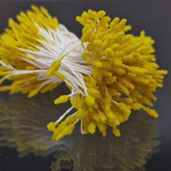 Dekorationspistiller med en vacker yta som liknar frost, fästa på tråd. Fina att matcha med olika blomsterarrangemang till kort, presentinslagningar och andra layoutprojekt. De cirka 2 millimeter breda pistillerna finns i båda ändarna av stjälken som är cirka 5 centimeter lång.