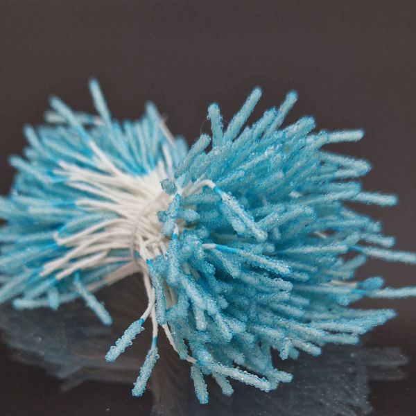 Dekorationspistiller med en vacker yta som liknar frost, fästa på tråd. Fina att matcha med olika blomsterarrangemang till kort, presentinslagningar och andra layoutprojekt. De cirka 2 millimeter breda pistillerna finns i båda ändarna av stjälken som är cirka 5 centimeter lång.