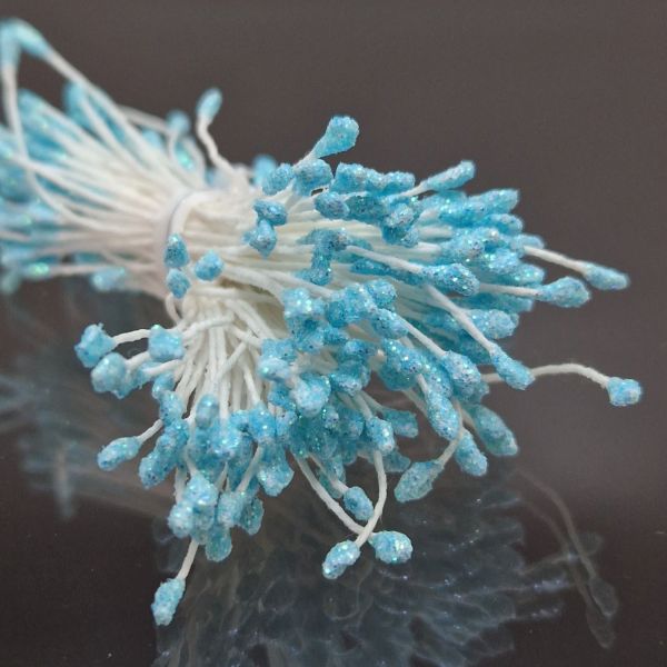 Små dekorationspistiller med fin glans, fästa på tråd. Fina att matcha med olika blomsterarrangemang till kort, presentinslagningar och andra layoutprojekt. De cirka 2 millimeter breda pistillknopparna finns i båda ändar av stjälken som är cirka 6 centimeter lång.