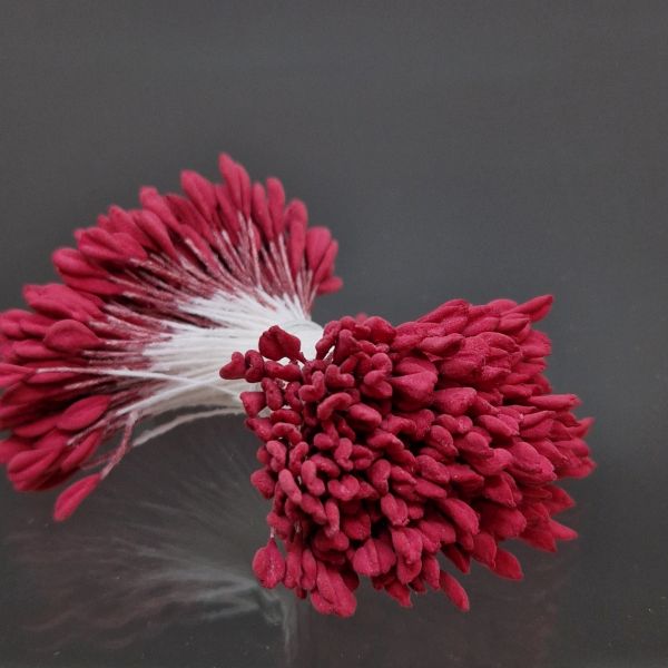 Små dekorationspistiller med matt yta, fästa på tråd. Fina att matcha med olika blomsterarrangemang till kort, presentinslagningar och andra layoutprojekt. De cirka 5 millimeter breda pistillknopparna finns i båda ändar av stjälken som är cirka 5 centimeter lång.