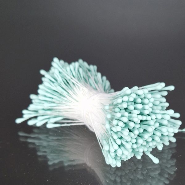 Små dekorationspistiller med matt yta, fästa på tråd. Fina att matcha med olika blomsterarrangemang till kort, presentinslagningar och andra layoutprojekt. De cirka 2 millimeter breda pistillknopparna finns i båda ändar av stjälken som är cirka 5 centimeter lång.