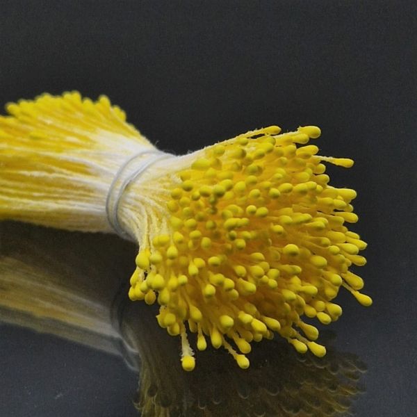Små dekorationspistiller med matt yta, fästa på tråd. Fina att matcha med olika blomsterarrangemang till kort, presentinslagningar och andra layoutprojekt. De cirka 1 millimeter breda pistillknopparna finns i båda ändar av stjälken som är cirka 5 centimeter lång.