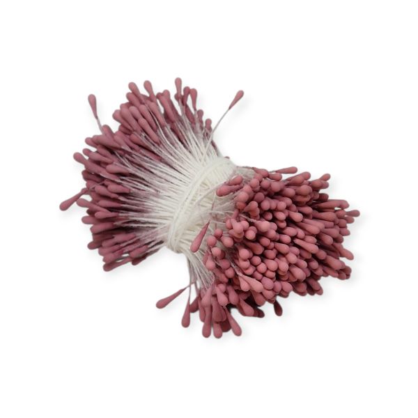 Små dekorationspistiller med matt yta, fästa på tråd. Fina att matcha med olika blomsterarrangemang till kort, presentinslagningar och andra layoutprojekt. De cirka 2 millimeter breda pistillknopparna finns i båda ändar av stjälken som är cirka 5 centimeter lång.