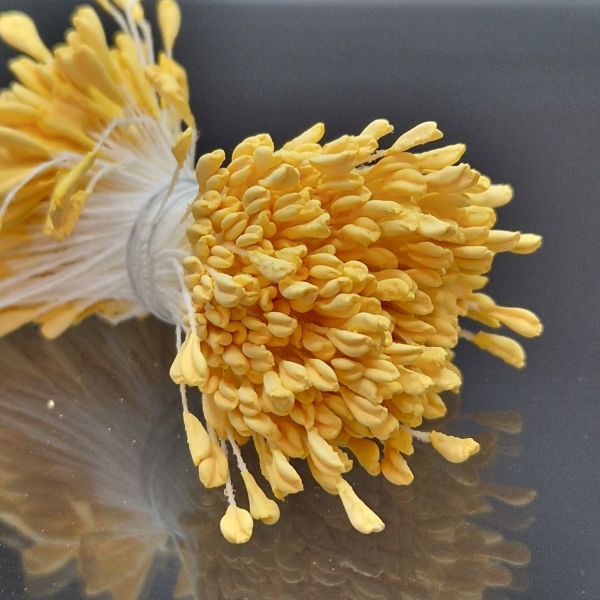 Små dekorationspistiller med matt yta, fästa på tråd. Fina att matcha med olika blomsterarrangemang till kort, presentinslagningar och andra layoutprojekt. De cirka 5 millimeter breda pistillknopparna finns i båda ändar av stjälken som är cirka 5 centimeter lång.