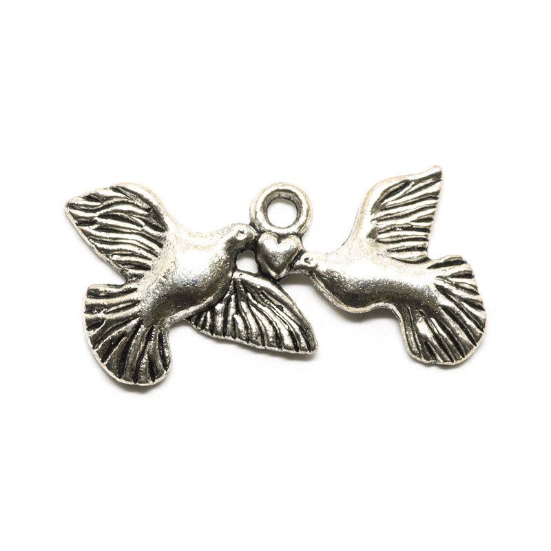 Berlock /Charm - Turturduvor med Hjärta - Antiksilver