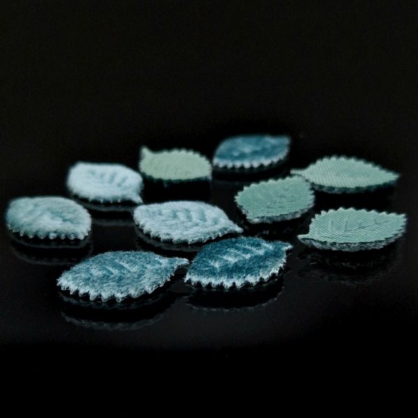 Dekorationsblomblad tillverkat i textil / velour. Perfekt att använda för att ge det där lilla extra till olika dekorationsprojekt!Varje blad mäter 12 x 20 millimeter i diameter.