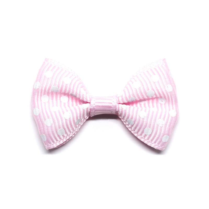 Liten dekorationsrosett i tyg med prickigt mönster som är fin att använda till att piffa upp dina scrapbookingalster, tygkreationer med mera.