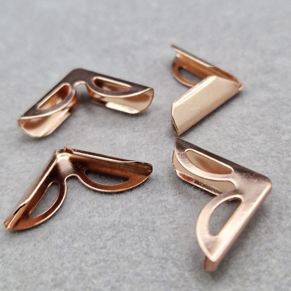 Dekorationshörn tillverkade i metall. Passar som dekoration och för att skydda hörn på böcker och album med mera vid bokbindning.