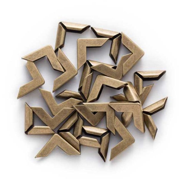Dekorationshörn tillverkade i metall. Passar som dekoration och för att skydda hörn på böcker och album med mera vid bokbindning.