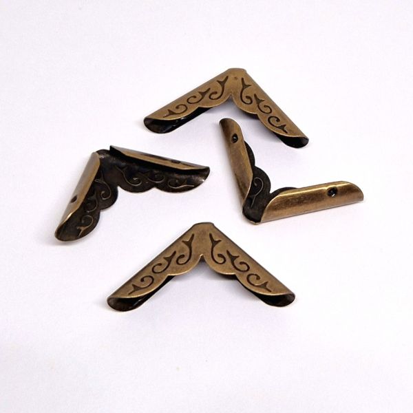 Dekorationshörn tillverkade i metall. Passar som dekoration och för att skydda hörn på böcker och album med mera vid bokbindning.