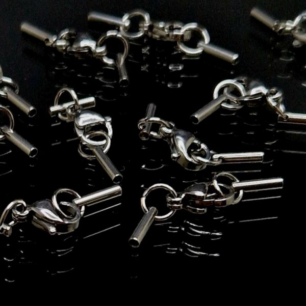 Karbinlås med cilinderformad avslutning med hål för montering t.ex halsband, armband.Limma fast med superlim, smyckeslim eller annan permanent transparent lim.