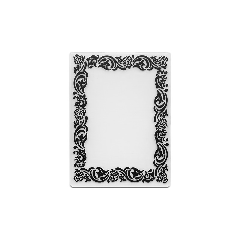 Embossing folder/präglingsplatta som används till prägling/torrembossing av papper. En embossing folder består av två plastskivor som man kan öppna och placera pappret mellan. När du vevar foldern genom en stansmaskin skapas vackra, upphöjda mönster eller motiv på det valda pappret.
