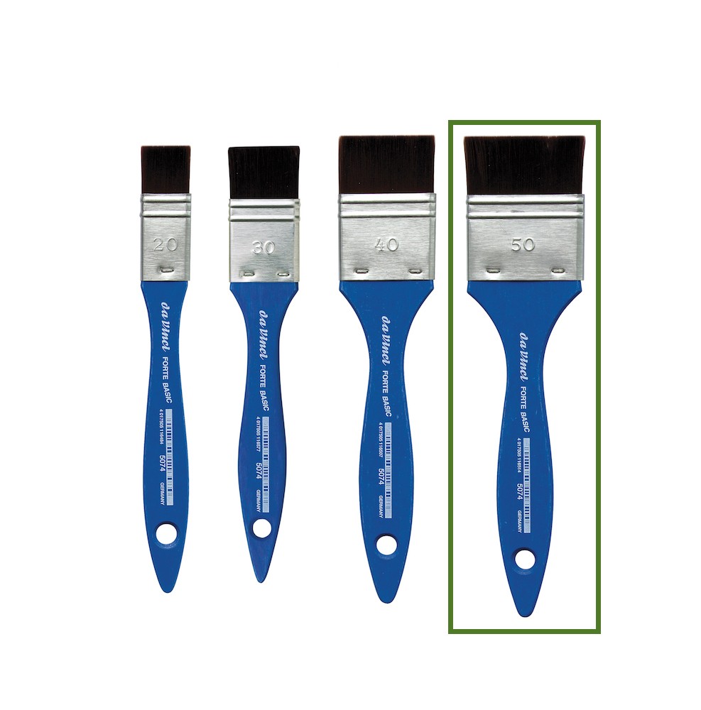 Forte Basic – moddlare från Da Vinci med opolerat träskaft och rostfritt metallbeslag. Den mörkgrå, platta penseln är tillverkad av kort och mycket elastisk syntestisk fiberborst. Passar perfekt för diverse hobbymålning med mera. Tillverkad i Tyskland.