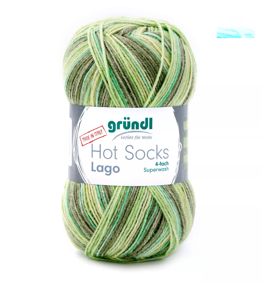 100 % Italienskt strumpgarn Hot Socks Lago- fina,vackra färger, behagligt mjukt och slitstarkt. Du kan sticka eller virka mycket från detta garn.