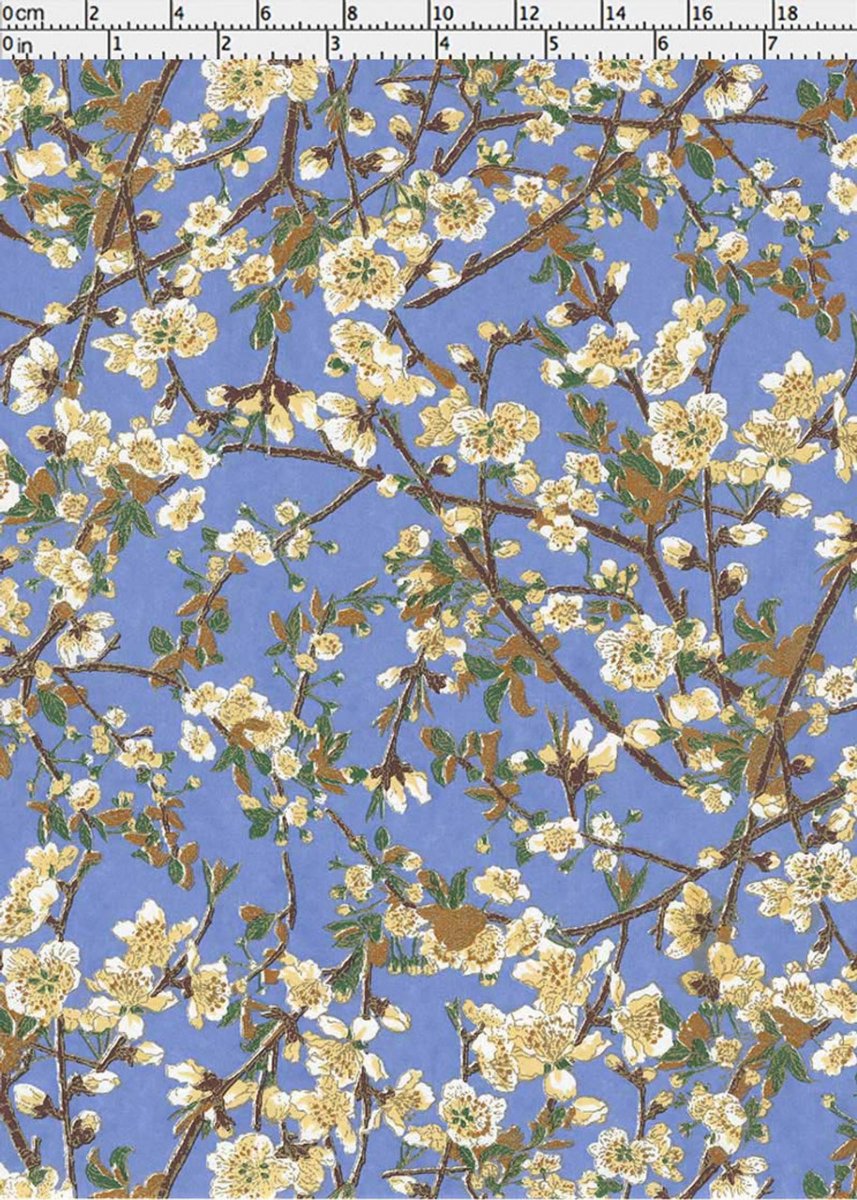 Japanskt papper - Chiyogami 0246C - Blommor - Blå