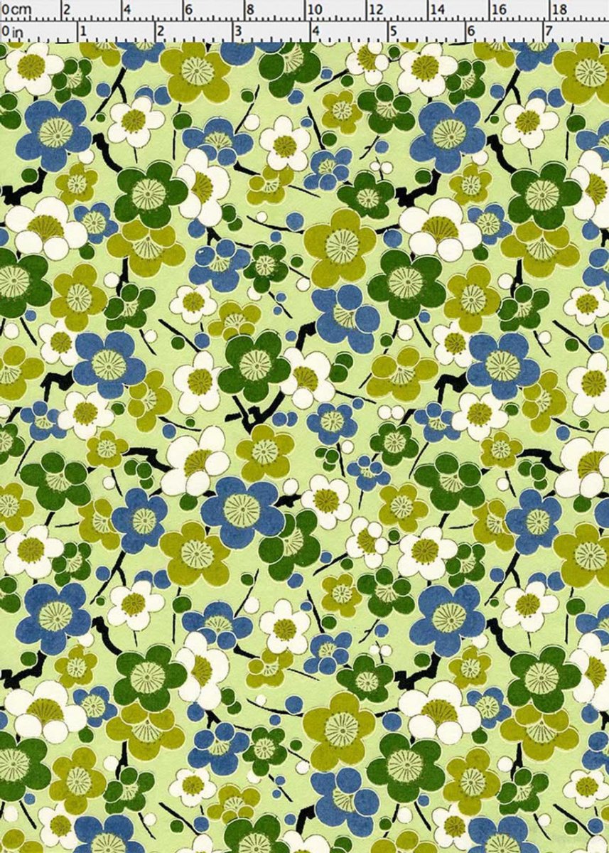 Japanskt papper - Chiyogami 0773C - Blommor - Grön