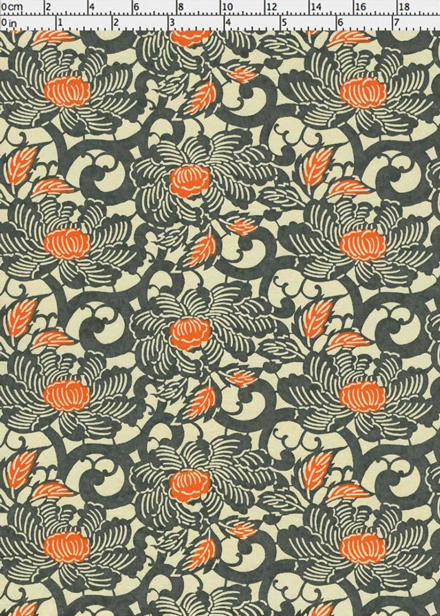 Japanskt papper - Chiyogami 0961C - Blommor - Grå