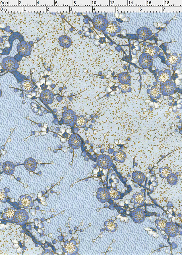 Japanskt papper - Chiyogami 0967C - Blommor - Blå