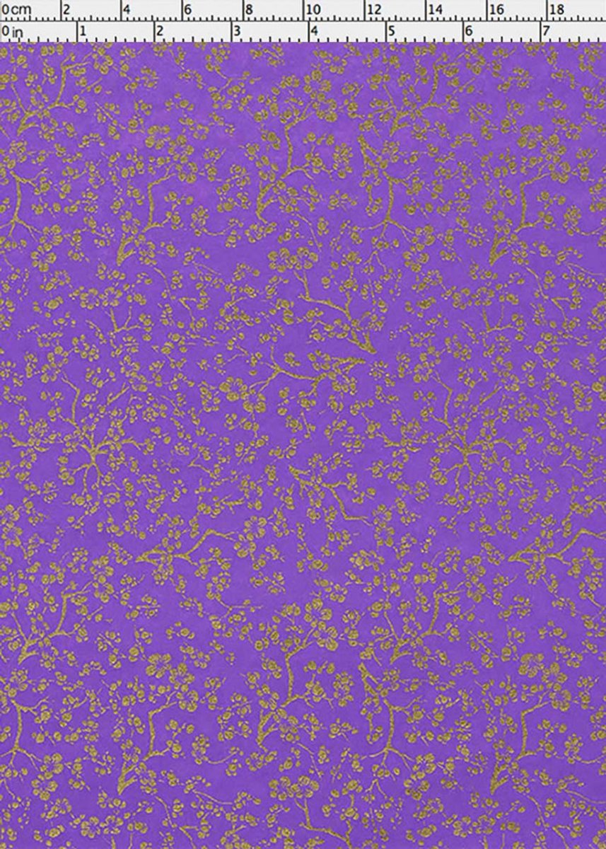 Japanskt papper - Chiyogami 0973C - Blommor - Lila /Guld