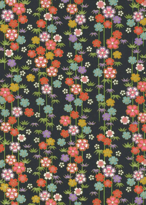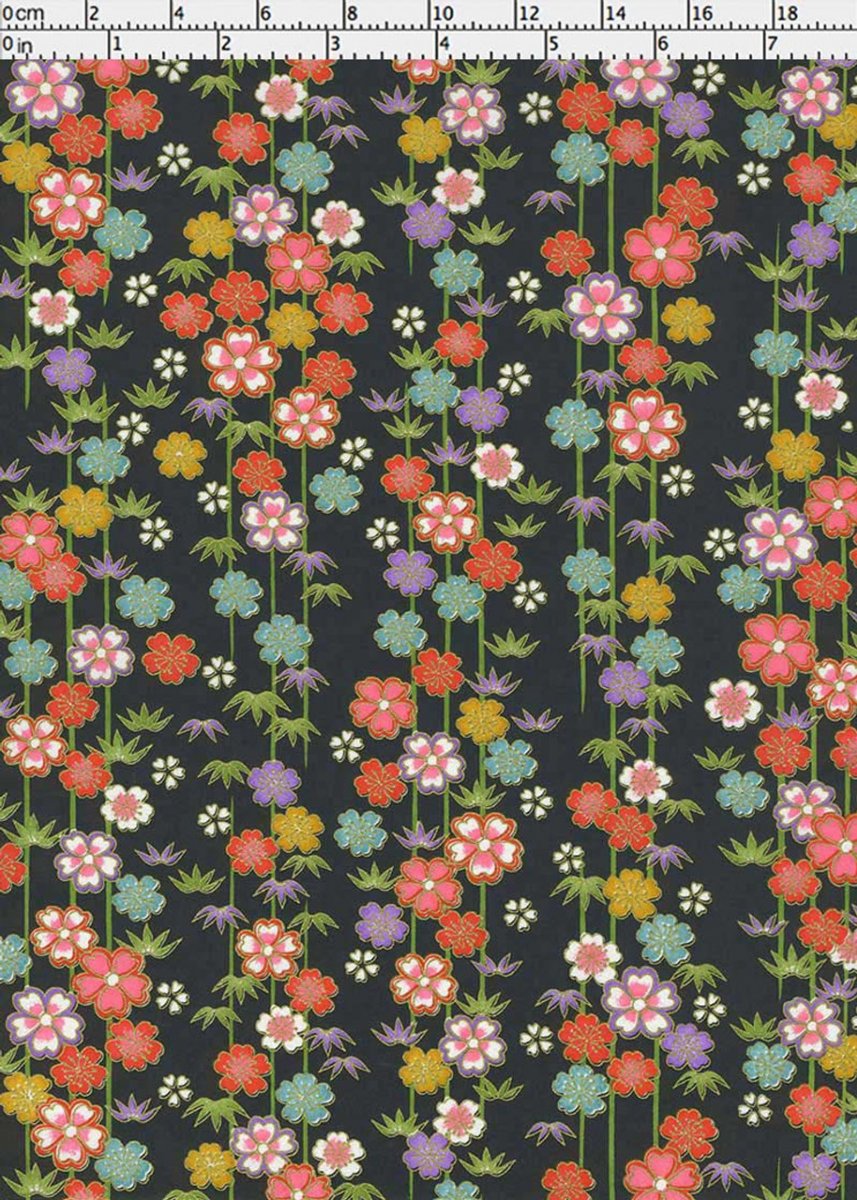 Japanskt papper - Chiyogami 0992C - Blommor - Svart