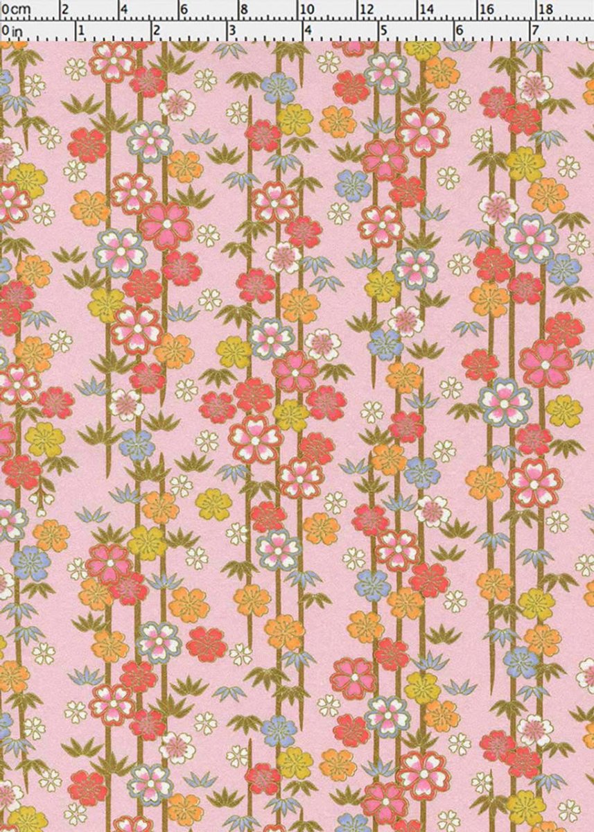 Japanskt papper - Chiyogami 0993C - Blommor - Rosa