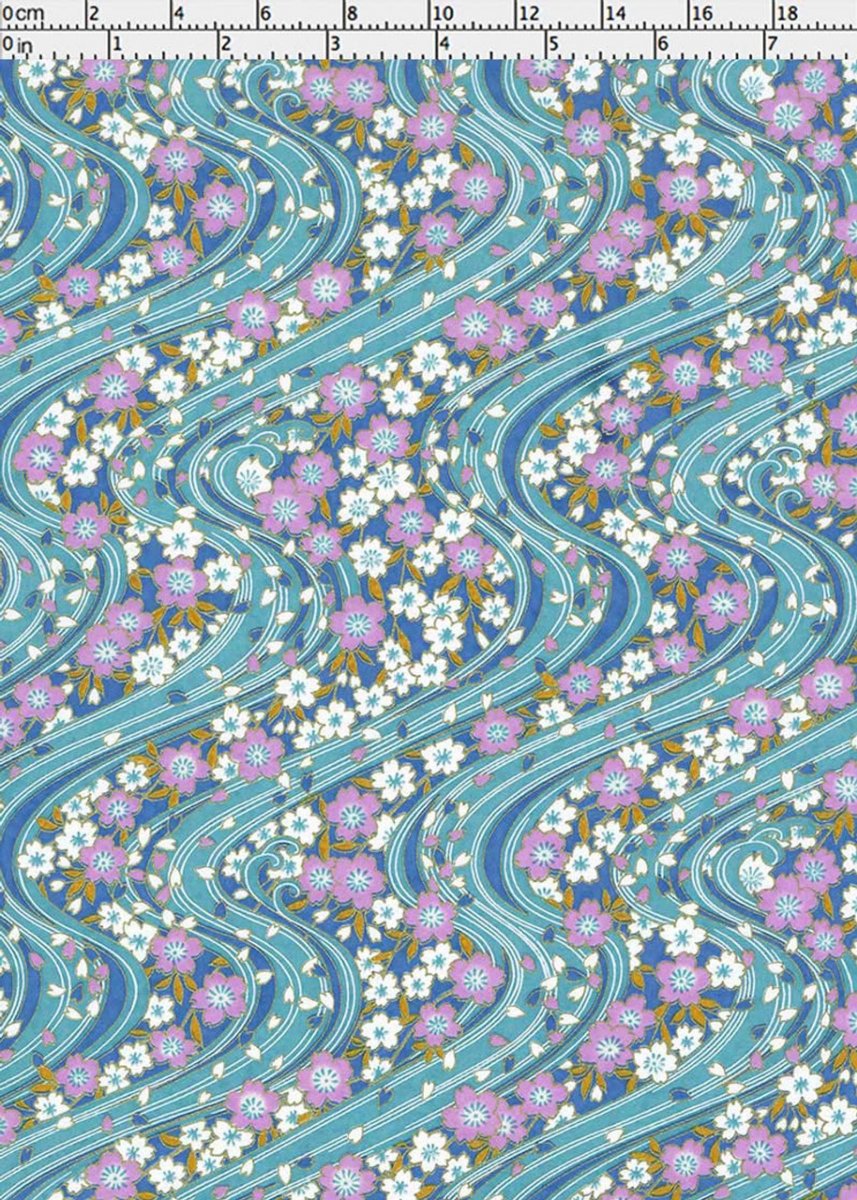 Japanskt papper - Chiyogami 0994C - Blommor - Blå