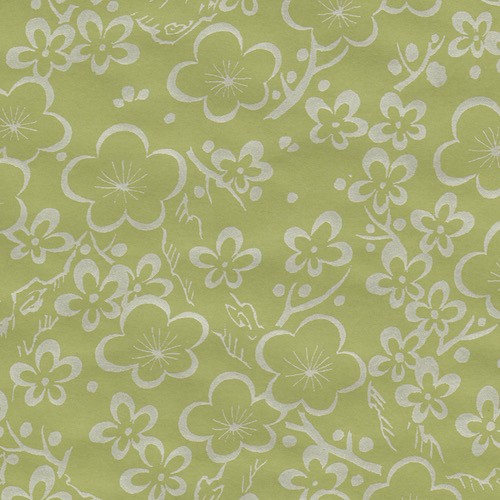 Handtryckta papper från Japan. Pappret silkscreenas med pärlemorskimrande bläck i en rad klassiska blommönster på färgade bas-ark. Pappret är idealistiskt för presentinslagning, inbjudningskort - och med de ljusa färgerna kan pappret t.o.m. läggas in i din utskriftsmaskin för en mycket elegant meny.