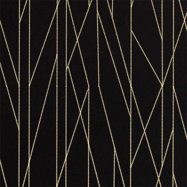 Elegant, svart omslagspapper med guldgeometrisk design. Ett lätt och böjligt papper med vit baksida. Ett exklusivt papper som är perfekt att skapa vackra och unika presenter med.
