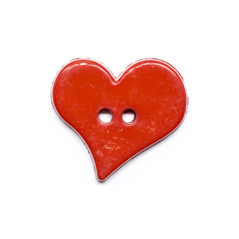 Knapp tillverkad i plast med två stycken hål i, formad som ett hjärta. Passar fint att använda som dekoration till dina lådor, album, scrapbookingkort och självklart till olika sömnadsprojekt.