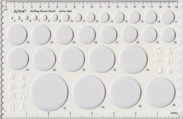 Quillingbräda med cirkelmallar som är det perfekta redskapet för att skapa runda former i olika storlekar till dina quillingkreationer. Hjälper dig att både rulla remsorna och att hålla fast dem medan limmet torkar. 31 olika storlekar medföljer (4–45 millimeter).